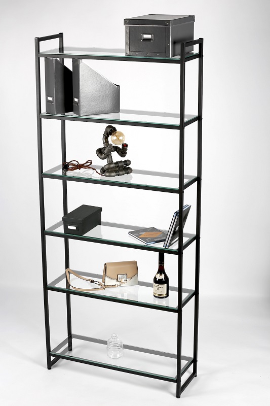 PORTA-I2009Ч Стеллаж лофт со стеклянными полками купить в интернет-магазине Big-Market.