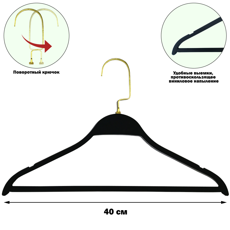SM-04*GC-B/W Вешалка-плечики с перекладиной, пластик с виниловым напылением (soft-touch) L-400 мм купить в интернет-магазине Big-Market.